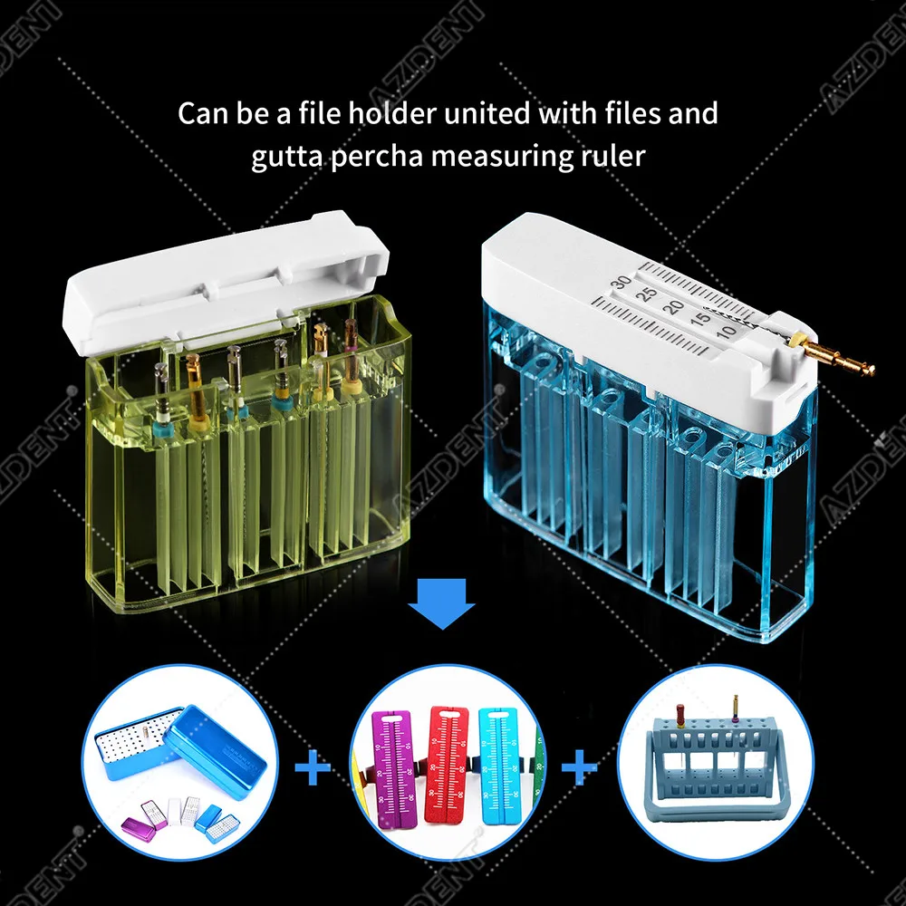 Особливості: 1. Виготовлені з міцного пластику, багаторазові й автоклавні за 134 c для стерилізації. 2. Може бути тримачем файлів, з'єднаних із файлами та вимірювальною лінійкою gutta percha. 3. Маленький розмір, світильник, портативний, три de світильник кольору на ваш вибір.